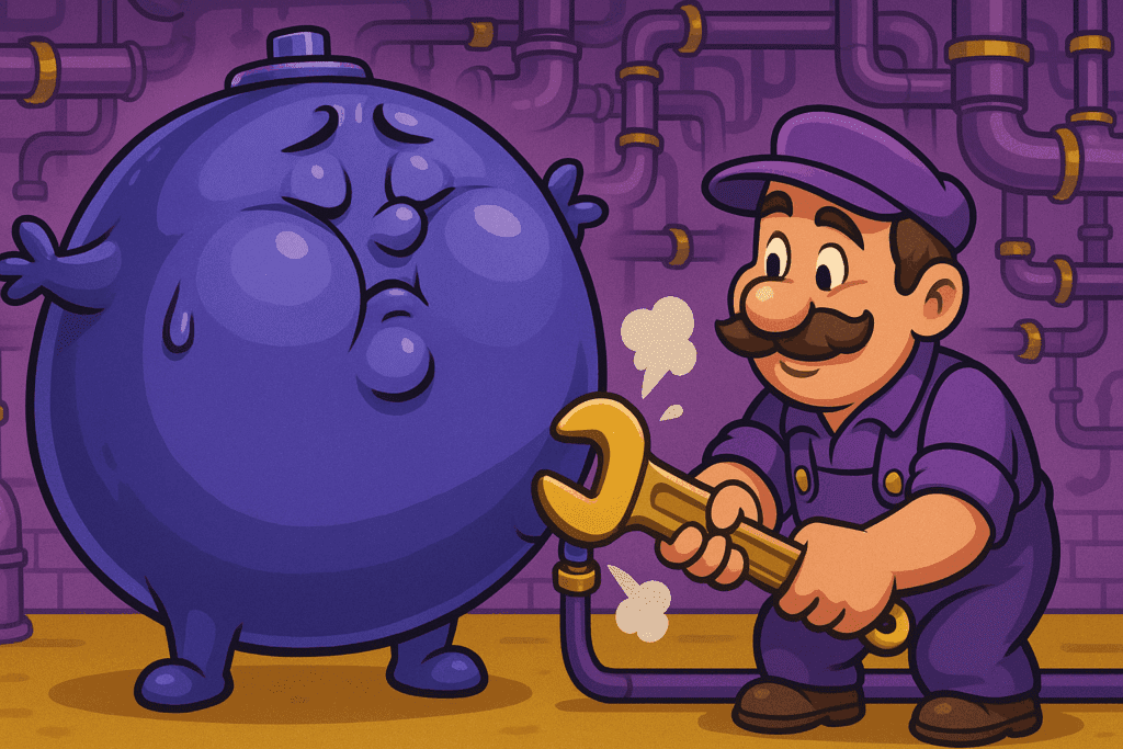 That is your water heater if you ignore it too long: swollen, stressed, and one minute away from bursting into musical panic.