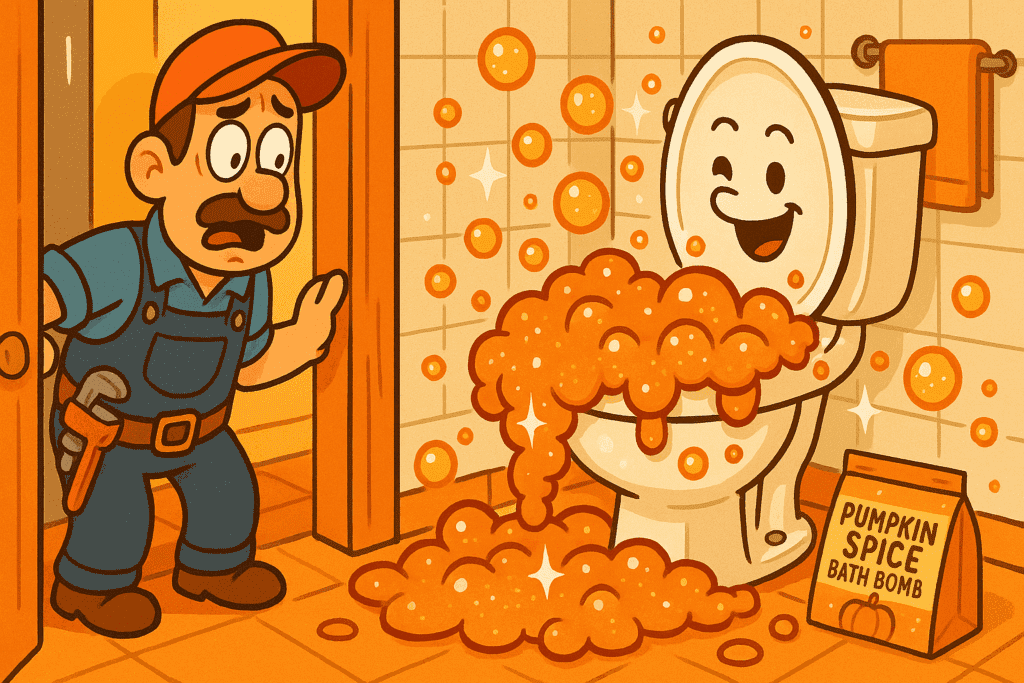 A homeowner tried to make their bathroom smell festive with a pumpkin spice bath bomb in the toilet.