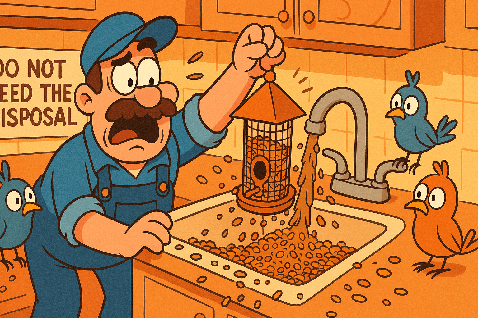Apparently, someone thought “feed the birds” meant “through the disposal.”